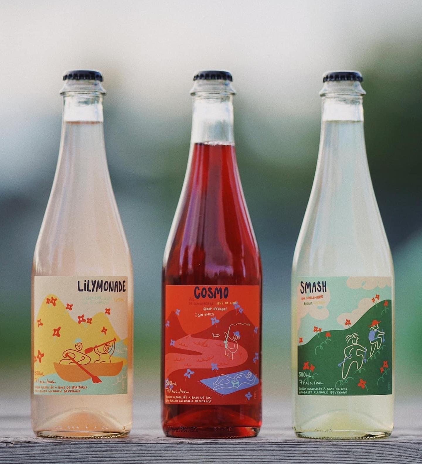 I got hired by Distillerie du Fjord, a highly successful gin distillery in the beautiful region of Saguenay-Lac-St-Jean in Québec, to illustrate labels for their first ever series of pre-mixed summer cocktails. They later on asked me to do a winter one too.
